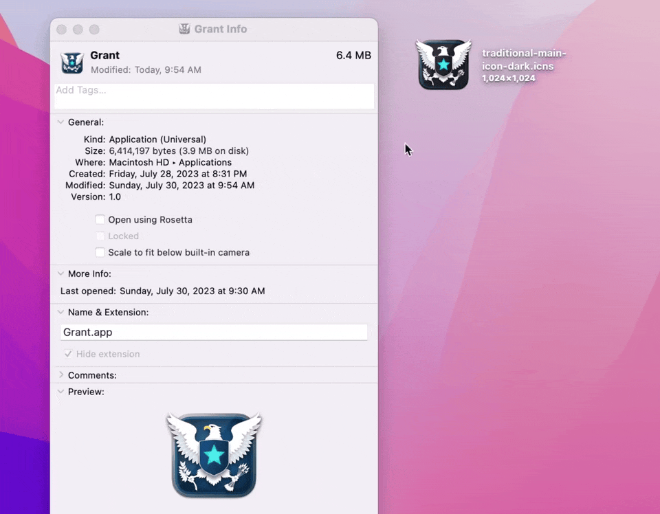 You might have noticed the updated app icon, which now reflects Grant's multi-platform identity. If you'd like to set your own, you can view alternative icons for Mac here